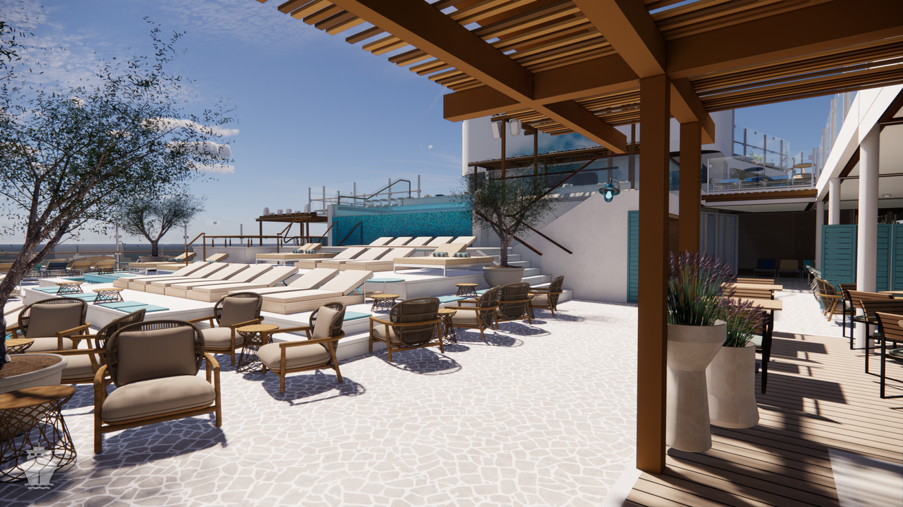 Loď Mein Schiff Relax má 15 palúb prístupných pre cestujúcich, otvorené verejné priestory o celkovej rozlohe 20 500 m2