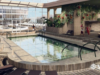 Na lodi sa nachádza 6 bazénov a 14 víriviek pre verejnosť, otvorená paluba vyhradená pre rodiny s deťmi, ako aj vodný Aquapark, kde sa skutočnosť mieša s virtuálnou realitou.