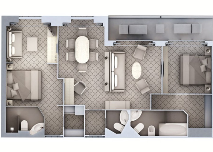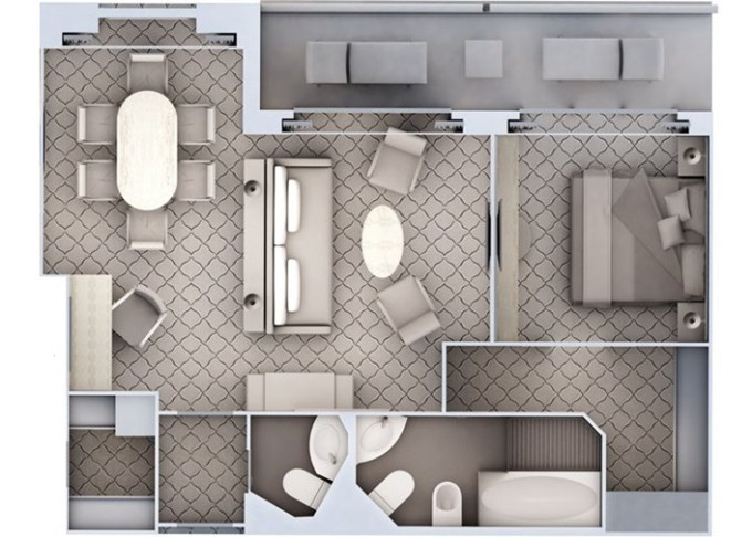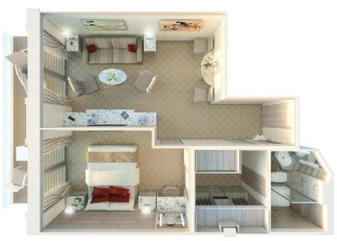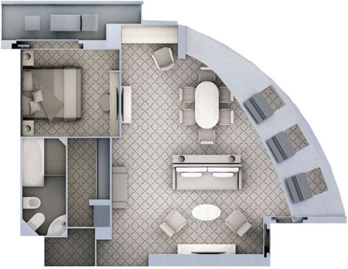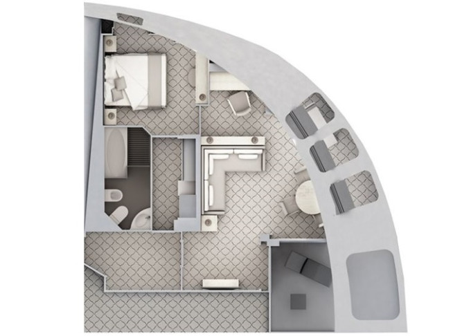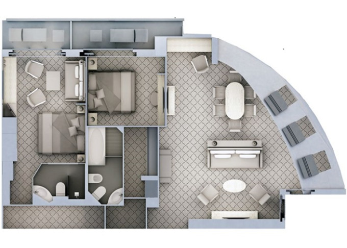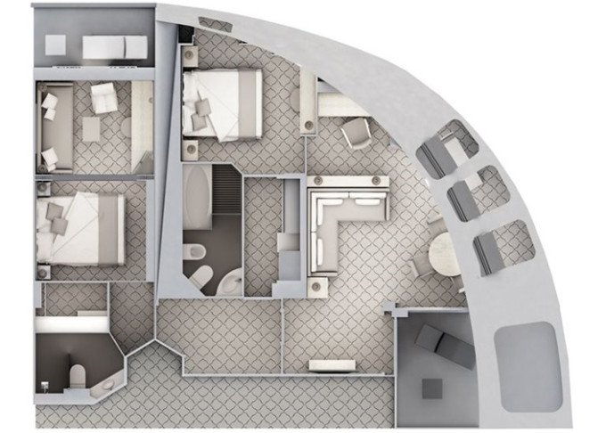 | R2 - Royal Suite 2 79,5 m² + balkóny 16,5 m. Royal Suite R1 spojená s Veranda Suite. 6. paluba - vpredu. Max 5 osôb. | 102 600 € 102 600 € za osobu |