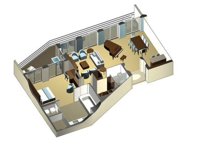 | CS - Celebrity Suite 37 m² + balkón 10 m². 9,11. paluba. Max 4 osoby. Výhody Suite. | 16 258 € 8 129 € za osobu |