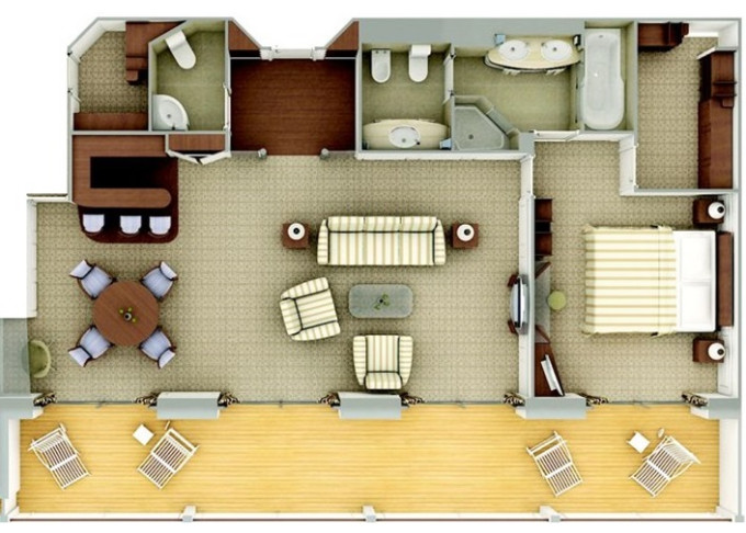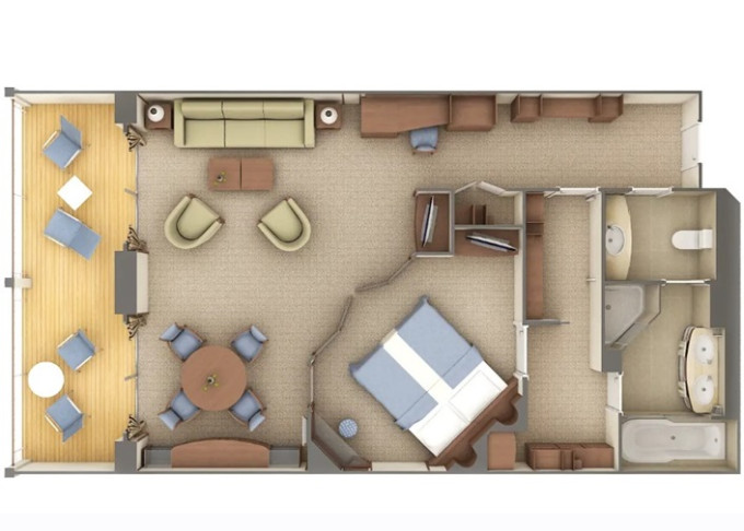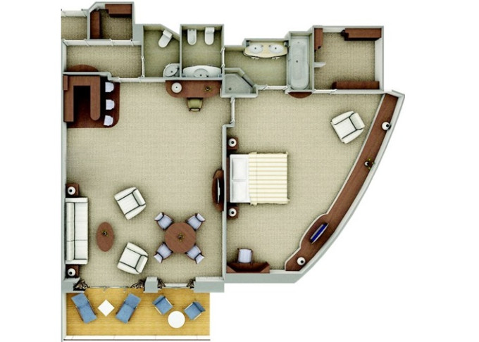 DX - Deluxe Veranda Suite 26 m² + 6 m² balkón. 6,8,9. paluba stred. Max 3 osoby. 15 600 € 7 800 € za osobu