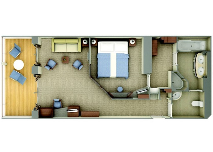 SV - Superior Veranda Suite 26 m² + 6 m² balkón.5. až 8. paluba. Max 3 osoby. 14 400 € 7 200 € za osobu