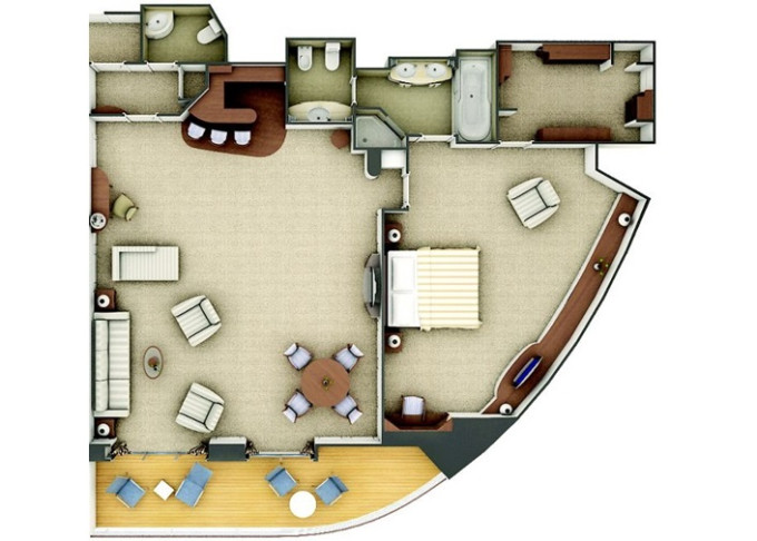 O2 - Owner's Suite 2 107 m² + 20 m² balkóny. Owners Suite O1 spojená s Vista Suite. 7. paluba stred. Max 5 osôb. 98 800 € 24 700 € za osobu