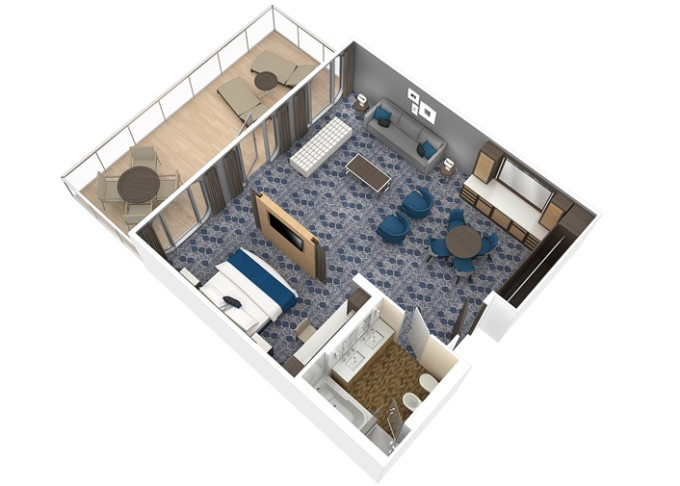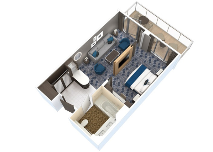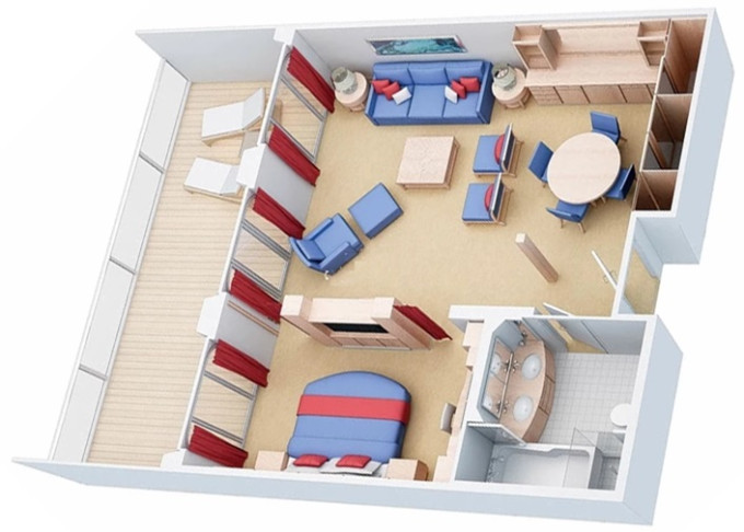 | J4 - Junior Suite s balkónom 27 m² + balkón 7 m². 7. až 4. paluba. Max 4 osoby. Výhody Royal Suite Sea Class. | 4 188 € 4 188 € za osobu | ||