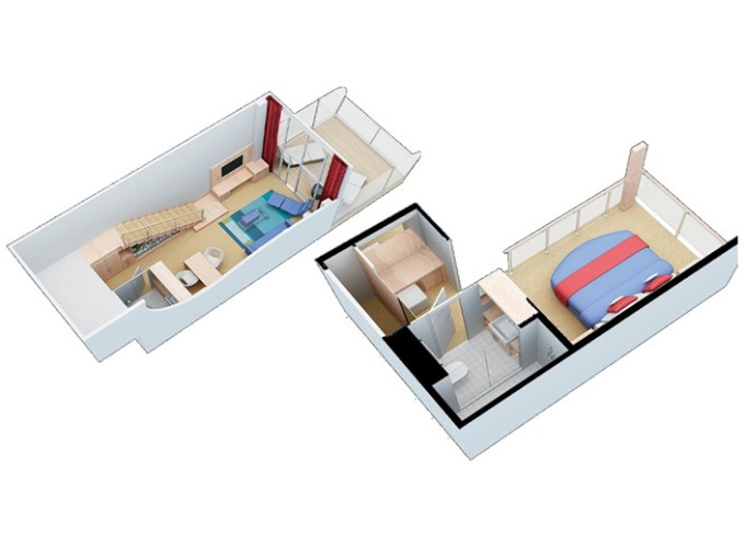 | L1 - Crown Loft Suite s balkónom 50 m² + balkón 10 m². 2-podlažný apartmán. 17. paluba. Max 4 osoby. Výhody Royal Suite Sky Class. | 9 574 € 4 787 € za osobu | ||