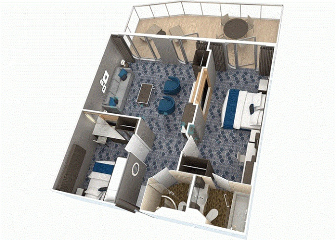 | OS - Owner’s Suite s balkónom 51 m² + balkón 22 m².10. až 14. paluba. Max 4 osoby. Výhody Royal Suite Sky Class. | 11 010 € 3 670 € za osobu | ||