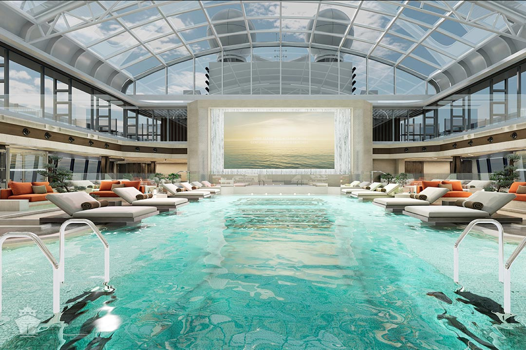 | Ocean Residence - Retreat Residence Suita 63 m² + Terasa s vírivkou a sedením 14 m² / 7. paluba: 18 m². Spálňa s obývacou a jedálenskou časťou, šatník. Koktailová súprava, minibar, kávovar, vodná kanvica, ďalekohľad, sejf, mramorová kúpeľňa s vaňou a sprchou, extra wc. Taška Technogym Case Kit. Fľaša šampanského na privítanie. Služby osobného majordóma. Maximálna kapacita 3 dospelí alebo 2 dospelí + 2 deti pod 18 rokov. | 66 760 € 16 690 € za osobu |