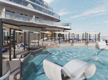 | Ocean Residence - Retreat Residence Suita 63 m² + Terasa s vírivkou a sedením 14 m² / 7. paluba: 18 m². Spálňa s obývacou a jedálenskou časťou, šatník. Koktailová súprava, minibar, kávovar, vodná kanvica, ďalekohľad, sejf, mramorová kúpeľňa s vaňou a sprchou, extra wc. Taška Technogym Case Kit. Fľaša šampanského na privítanie. Služby osobného majordóma. Maximálna kapacita 3 dospelí alebo 2 dospelí + 2 deti pod 18 rokov. | 38 970 € 12 990 € za osobu |