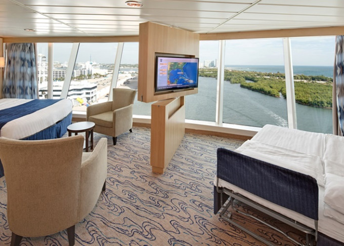 | VP - Ocean View Panoramic Suite (bez balkónu) 38 m². Panoramatické neotvárateľné okná. Max 6 osôb. Výhody Suite. | 4 828 € 1 207 € za osobu |