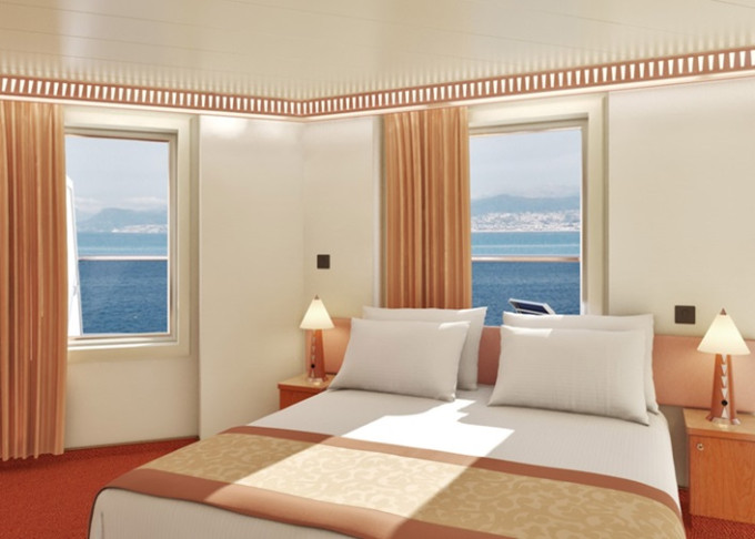 | 6A - Kajuta s oknom 20 m². Neotvárateľné okno.1. paluba vpredu, vzadu. | 912 € 456 € za osobu | ||