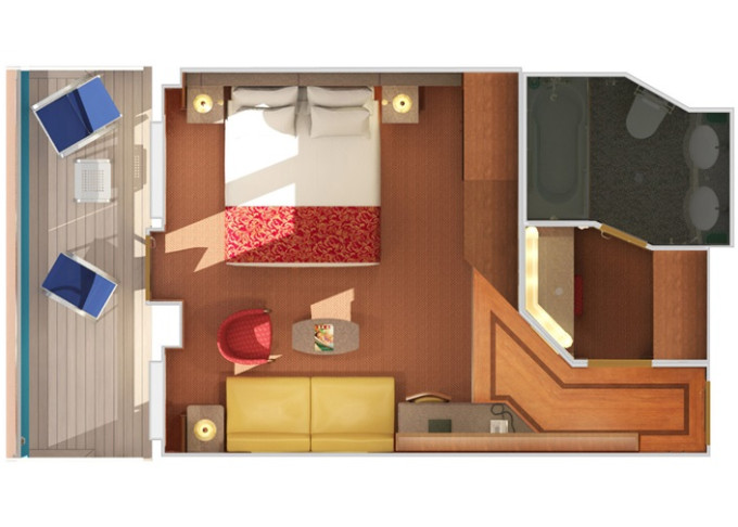 | 9C - Kajuta s balkónom Premium Vista 17 m² + rohový balkón 7 m². 6,7,8. paluba vzadu. | 1 512 € 756 € za osobu | ||