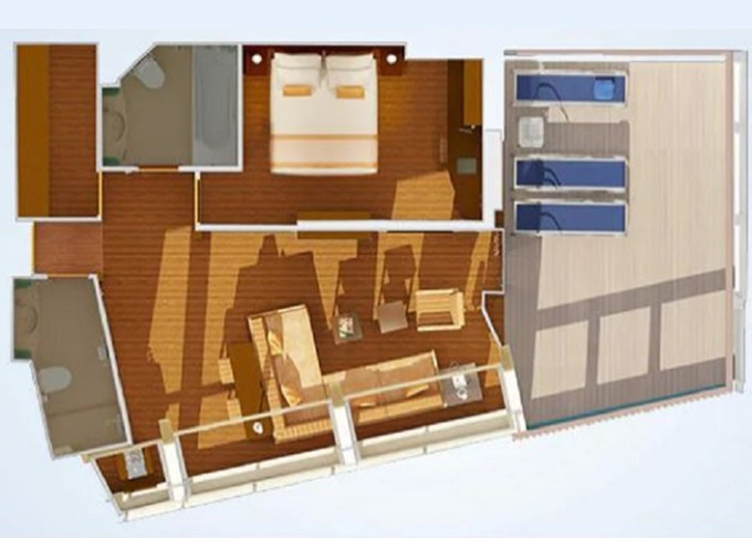 | GS - Grand Suite 32 m² + balkón 24 m². 7. paluba stred. Výhody Suite. | 2 478 € 1 239 € za osobu | ||